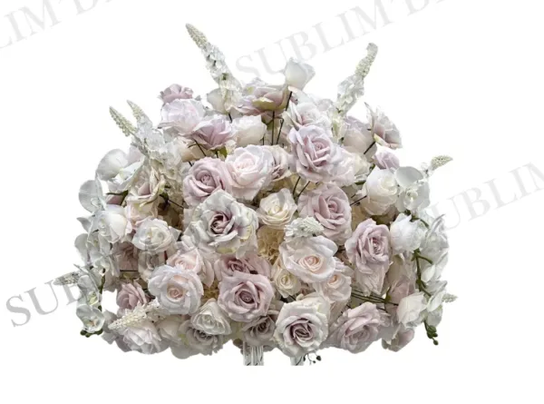 La boule de fleurs mariage artificielle Sublim'Decor offre un rendu floral ultra-réaliste et raffiné, idéal pour les mariages et événements haut de gamme. Avec son diamètre de 70 cm et ses coloris doux (blanc, rose poudré, beige, parme), elle s'intègre naturellement aux décors élégants et intemporels.