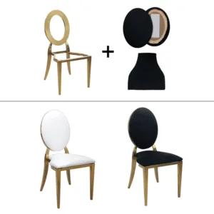 La chaise Bianca Gold 2-en-1 professionnelle , avec dossier interchangeable, est une chaise événementielle dorée haut de gamme permettant de créer deux styles différents avec un seul modèle , idéale pour les mariages, galas et réceptions , offrant polyvalence, rentabilité et élégance aux professionnels de l'événementiel.