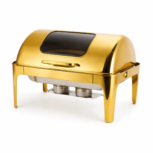 chafing Dish rectangulaire doré, chauffe plat mariage, chauffe plat buffet, chafing Dish inox, chauffe plat bain marie, brûleur alcool chafing Dish, chauffe plat traiteur, chauffe plat événementiel.