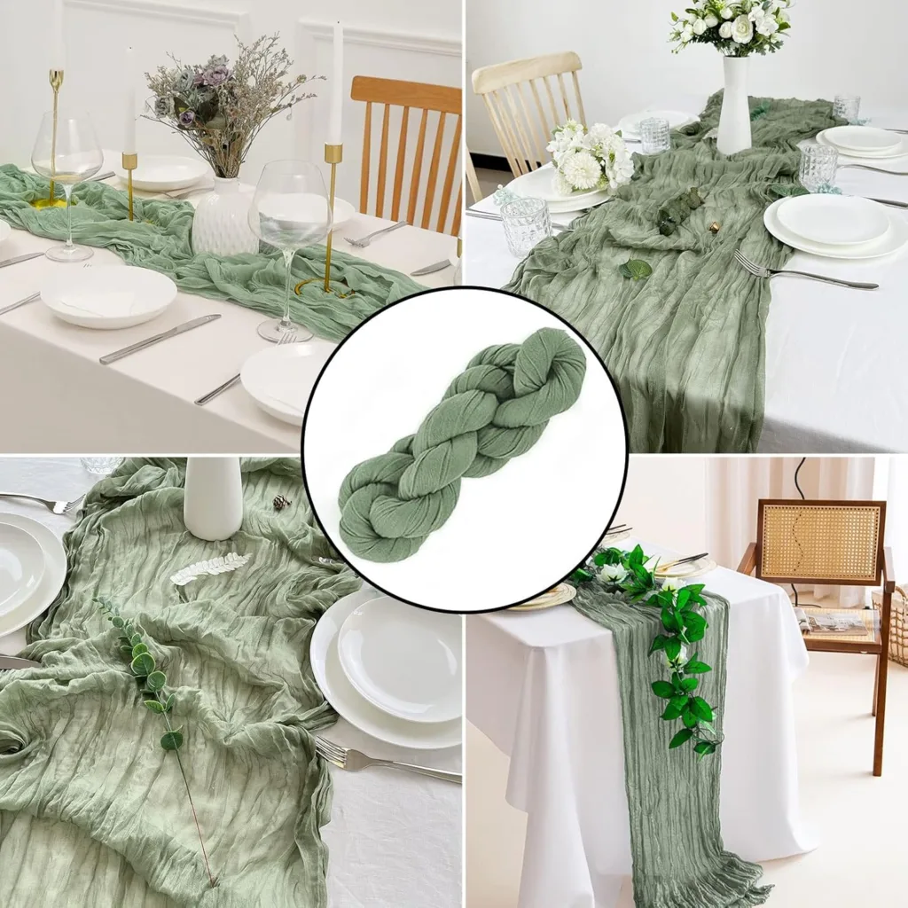 Chemin de Table – Gaze de coton Vert Sauge