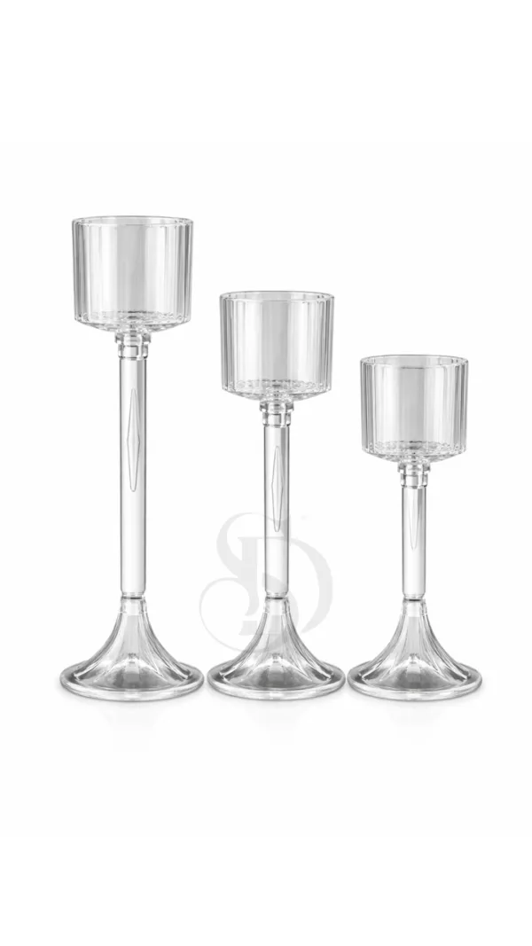 - Le centre de table photophore sur pied en verre transparent Sublim'Decor, disponible en 20, 23 et 26 cm, est un accessoire décoratif élégant pour mariage et événementiel, idéal comme support de bougies et décoration de table raffinée, en intérieur comme en extérieur.
