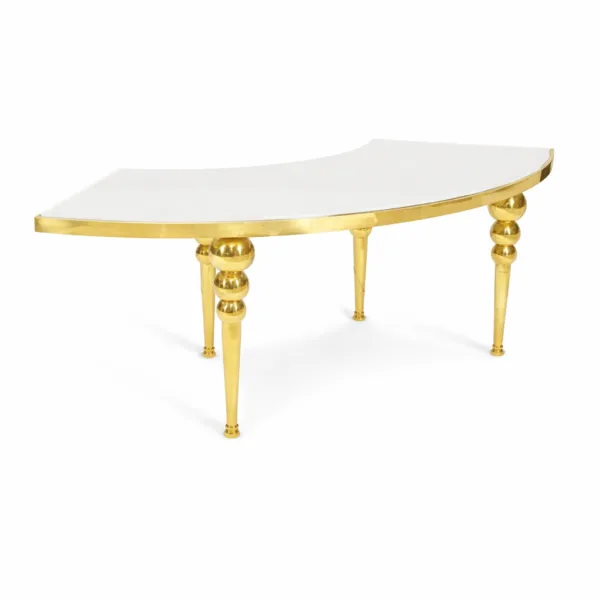 - Couleur : plateau bl anc Laqué - pieds et structure dorés